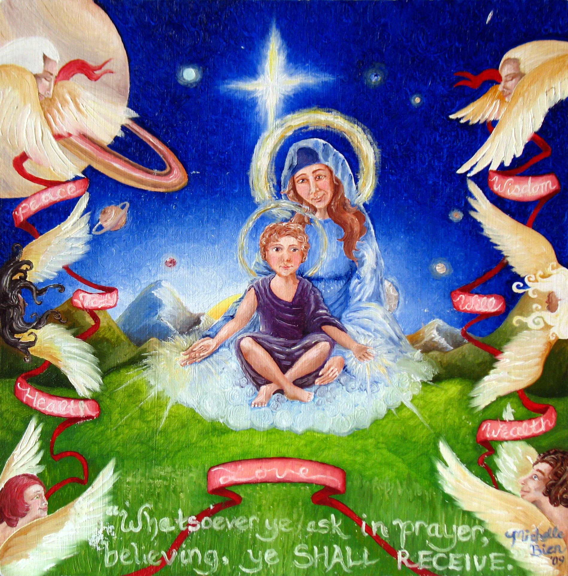 This piece was completed last-minute and put on display for an event while the oil was still wet. Someone must have touched it, causing some small marks and smears, perhaps under the assumption that it was dry and they were curious to feel the texture - or maybe an “angel” wanted to contribute to the final composition!
