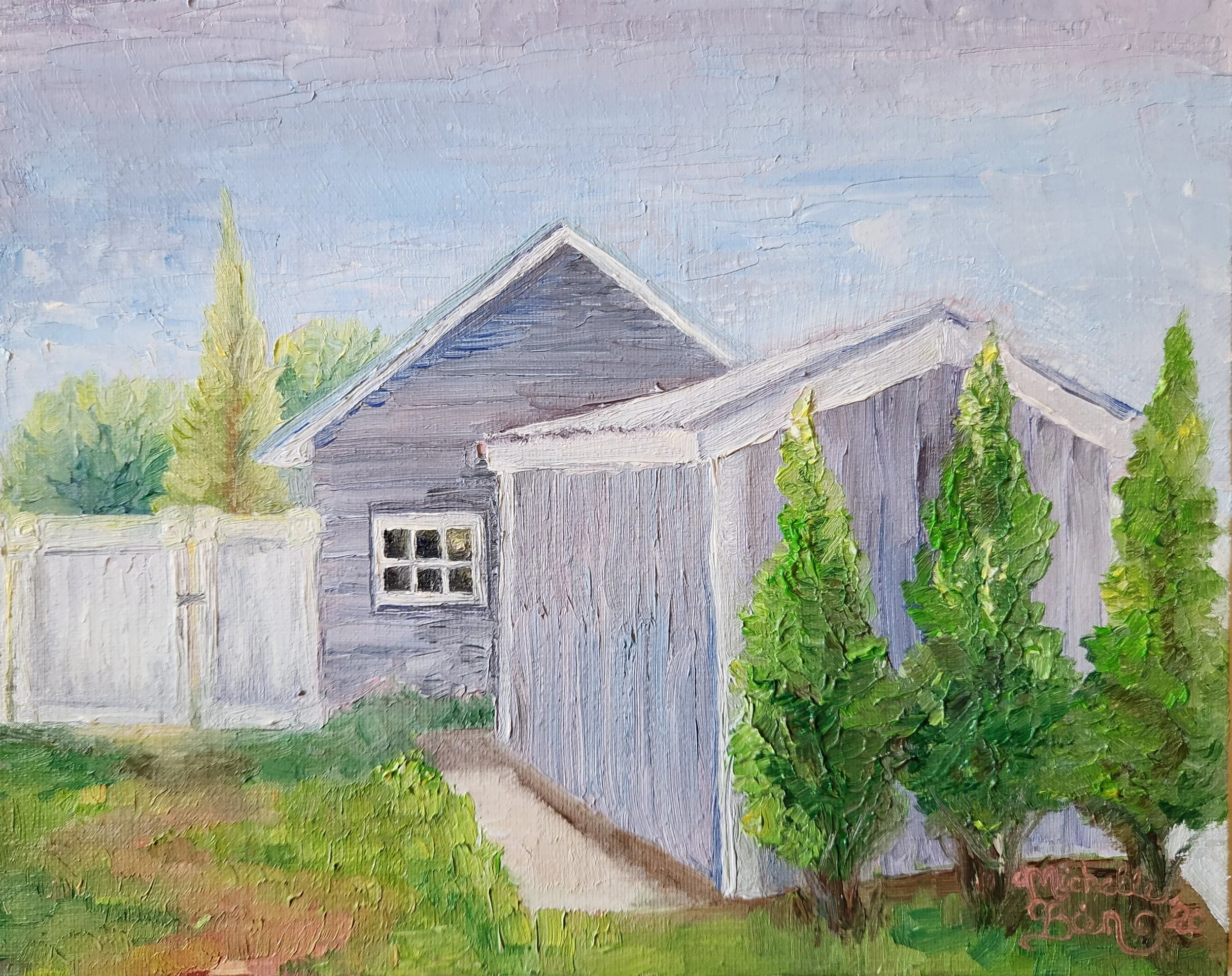 “Plein Air” is creating art outdoors. The work is started on-site in real environments. Time constraints or weather sometimes require completing the work off-site.